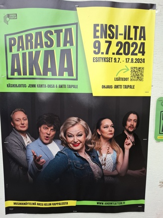 la 3.8. Vihdin kesäteatteriesitys " Parasta aikaa ", joka on Anssi Kelan musiikkiin pohjautuva näytelmä.